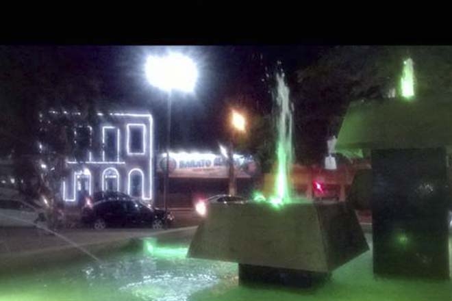 : Em Gravataí, Praça da Bíblia, na frente da Prefeitura, está iluminada com as cores da Chapecoense