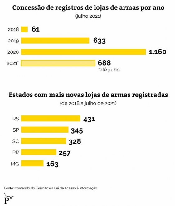 A maior parte das novas lojas foi registrada no estado do Rio Grande do Sul, que historicamente possui uma grande quantidade de lojas de armas de fogo e fábricas — é lá que fica a fábrica da Taurus, a maior fabricante brasileira.