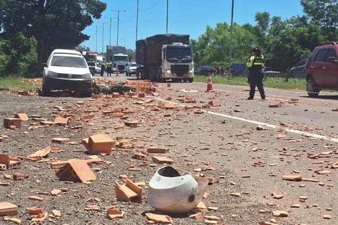 Conforme o CRBM, o caminhão Mercedes-Benz Atego, carregado com tijolos, seguia na faixa da esquerda da rodovia quando colidiu na traseira de um Volkswagen Saveiro que trafegava à frente. Com o impacto, parte da carga se desprendeu e caiu sobre a pista.