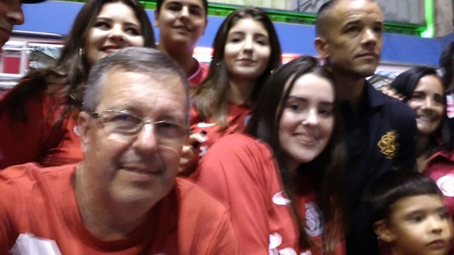 Fui por ser jornalista? Fui por ser torcedor colorado? Acho que fui pelas duas razões, e também para oportunizar que a Joanna pudesse conhecer de pertinho o craque do time pelo qual ela devota particular paixão. A Joanna, para deixar claro, é filha da minha primeira-dama, a Cláudia!
