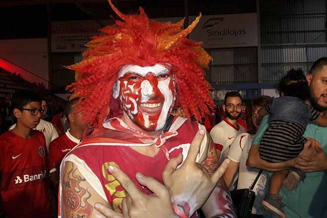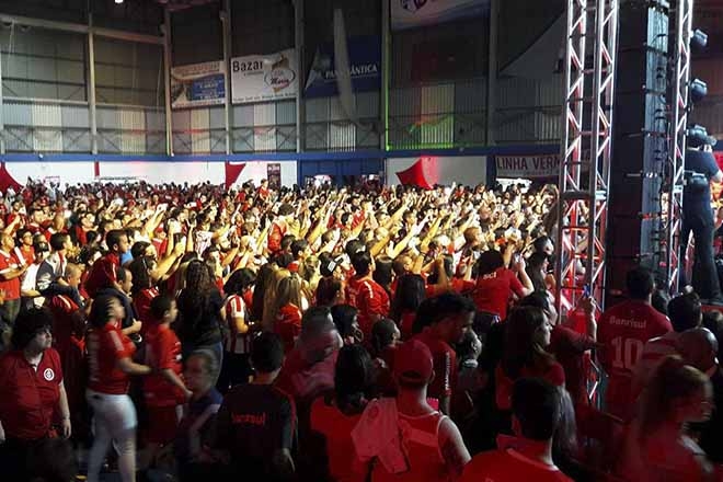 O personagem Fanaticolorado circulou por todos os cantos do ginásio e posou para muitas fotos, enquanto os DJs Sérgio Panasuk e Vitor Hugo animavam a galera. Um deles, não sei qual foi, depois de colocar em alto e bom som uma das músicas que é um hino de guerra da torcida, resolveu voltar ao set list programado para a noite. Ouviu uma tremenda vaia e, daí em diante, só se escutou música que tinha a ver com a torcida, com o time, e com as vitórias vermelhas.