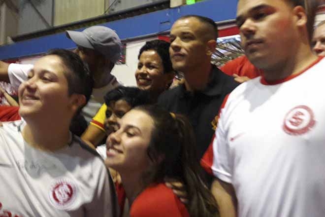 Adriano Gabiru estava lá! Ao lado de Perdigão, outro ex-jogador colorado. Ambos extremamente simpáticos, desceram do palco e se jogaram, por assim dizer, nos braços dos torcedores. Acho que foram milhares de selfies e autógrafos concedidos pelos dois.
