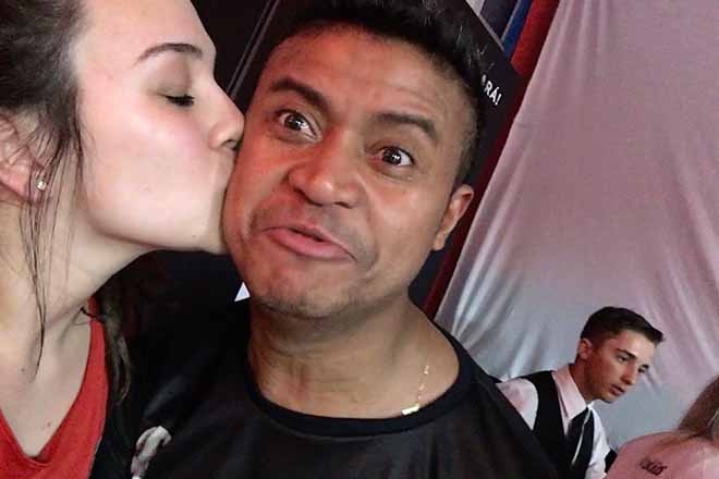 : Cláudio e a filha, entre ele e D'Ale, na festa colorada