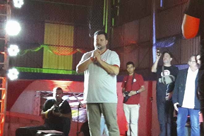 Mas, como repórter, mantive os olhos abertos a quase tudo e quase todos que compunham aquele mar de camisas vermelhas, a grande maioria com o número 10 às costas. Tudo muito bem organizado. Da facilidade de acesso, ao estacionamento, ao ingresso no ginásio do Paladino, à disposição dos food trucks e variedade de lanches, aos pontos de venda de água e refrigerantes…