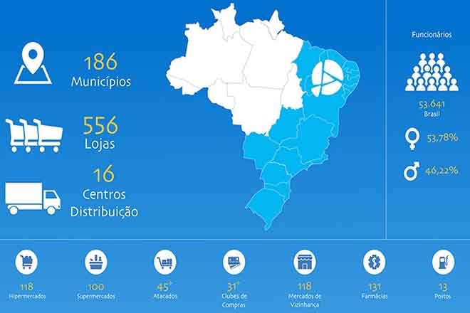 A conquista de outras regiões brasileiras aconteceu após importantes aquisições. Em 2004, compramos o Bompreço, líder no Nordeste e referência em varejo na região. No ano seguinte, concluímos a aquisição do Sonae Distribuidora no Sul, com forte presença nos três estados da região com as bandeiras BIG, Nacional, Maxxi Atacado e Mercadorama.