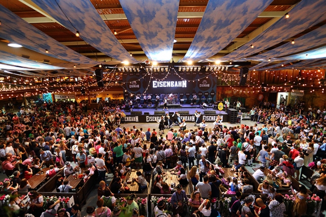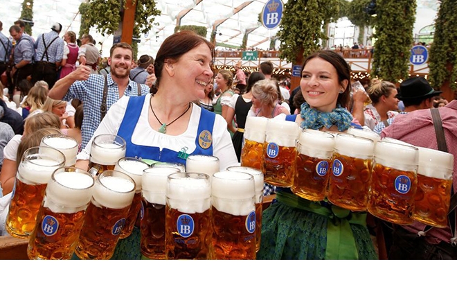 Espalhada em catorze tendas, cada uma com suas próprias atrações e patrocínio de uma cervejaria específica, a festa de munique é uma das maiores do mundo. Recebe anualmente mais de sete milhões de pessoas, que consomem seis milhões de litros de cerveja em dezesseis dias!