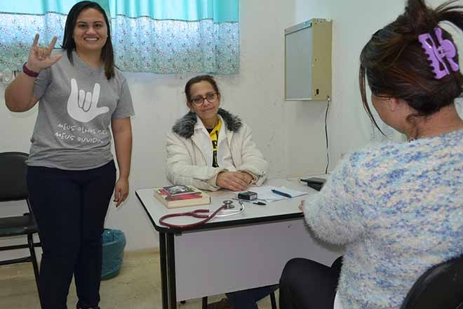 – É um serviço que visa a garantia do direito integral de acesso da pessoa com deficiência auditiva e qualifica o atendimento clínico e de enfermagem dando um direito de compreensão e comunicação que está amparado pele estatuto e pela política nacional de saúde da pessoa com deficiência.
