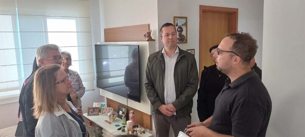 Acompanhado pela primeira-dama Fabi Medeiros, pela secretária municipal de Habitação, Neka Fagundes, e pelo vereador Tiago Eli, o prefeito inspecionou as instalações do conjunto existente, na capital gaúcha, avaliando soluções que podem ser replicadas em Cachoeirinha. “Ver de perto um projeto concluído e em funcionamento é fundamental para garantir que possamos oferecer o melhor possível às nossas famílias que tanto sofreram”, disse.
