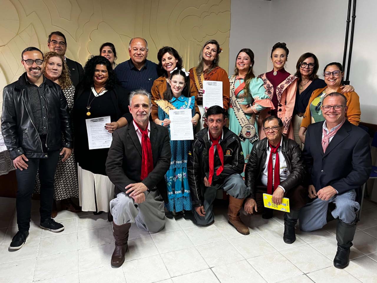 A cerimônia de encontro com os homenageados contou com a presença do prefeito em exercício Dr. Levi Melo, do secretário adjunto de Cultura Giulliano Pacheco, da diretora de Cultura Izabel Cristina, do representante do Conselho Municipal de Cultura Lúcio Mauro Motta de Souza, do suplente Nelton Fagundes, do coordenador da 1ª Região Tradicionalista Édison Fagundes e da representante da produtora Engenho da Arte, Luciana Bitelo.