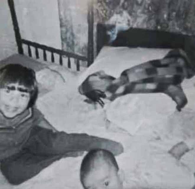 No Natal de 1981, esperando o Papai Noel, com minha irmã.