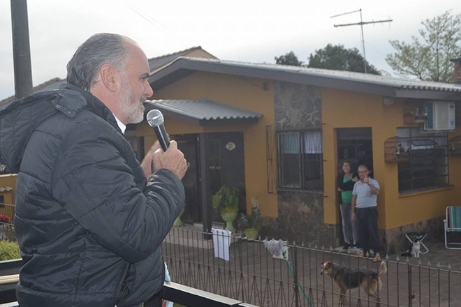 Ontem Bordignon estava na zona leste, onde recebeu flores de uma moradora. Hoje está na zona sul, ao lado do vice Cláudio Ávila.