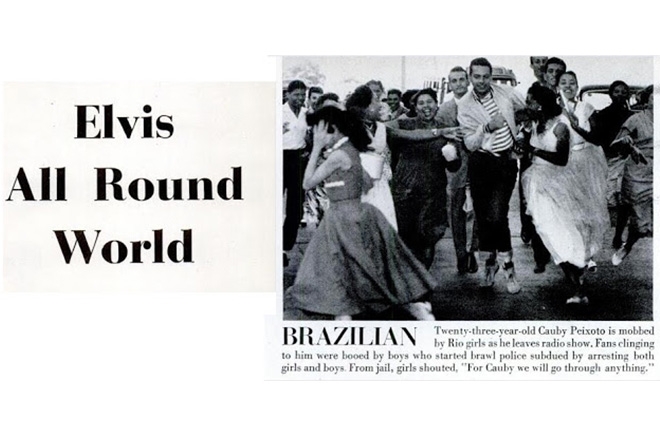 Na América, o cantor foi batizado de Ron Coby, e posteriormente Coby Dijon. Foi recebido por Carmen Miranda, já em decadência (ela faleceria no mesmo ano). Carmen era o símbolo das glórias do passado, representante do samba brasileiro. Cauby era a nova geração, e chegou à América como cantor do novo gênero de sucesso, o rock' and roll. A Revista Life chegou a chamá-lo de "The Brazilian Elvis" em referência a Elvis Presley.