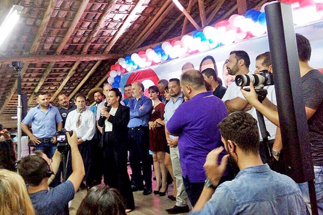A candidata foi recebida pelo jingle de campanha, cuja abertura tem a doce voz infantil de Betânia de Oliveira Balen, de seis anos.